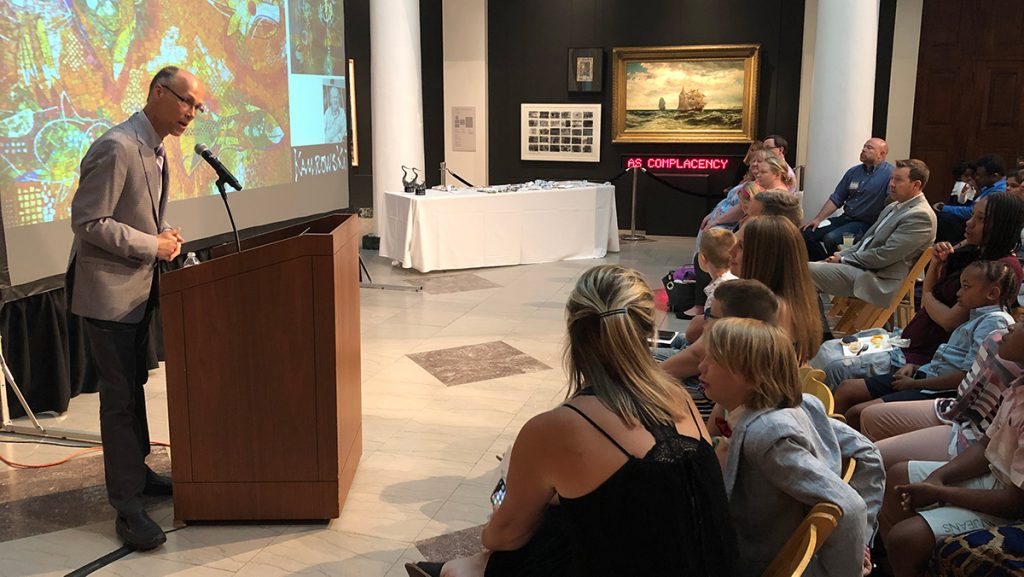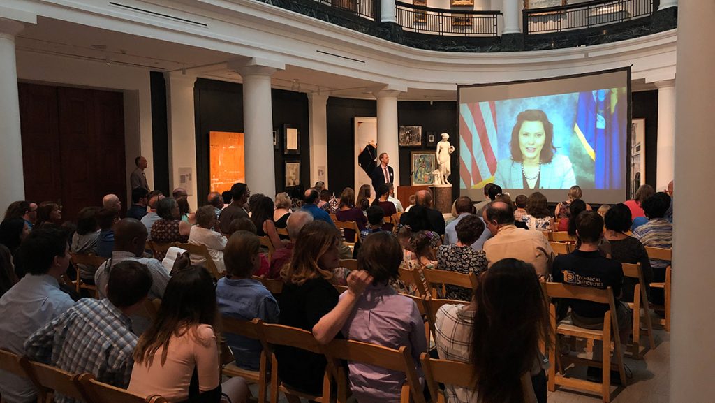 The winners of the 2019 Michigan Design Prize were announced on Wednesday June 12 at the awards ceremony in the beautiful atrium of the University of Michigan Museum of Art (UMMA). David Byron, President of the Michigan Design Council and Sundberg-Ferar’s Manager of Design and Innovation Strategy, revealed the 12 student designs who would receive the award. Even before the doors to the event were open, dozens of families buzzed around the entrances eagerly waiting to celebrate their child, grandchild, or sibling, and witness the best ideas from the minds of Michigan’s students.