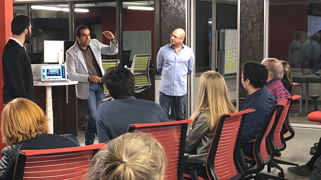 Jeevak began the evening by explaining the rigorous discipline of industrial design and its proper place in the product development process for businesses. Industrial designers draw on many factors to produce good designs that will delight stakeholders and drive business. They start the creative process by drawing on a broad understanding of design across many industries to inform the design of one product in a specific industry. They also rely on collaboration with team members from many disciplines to deliver as thorough and cohesive a solution as possible. This kind of cross-pollination of ideas from other industries and individual perspectives results in a stronger end product.
