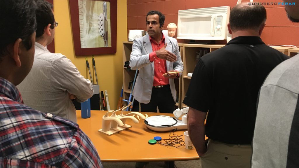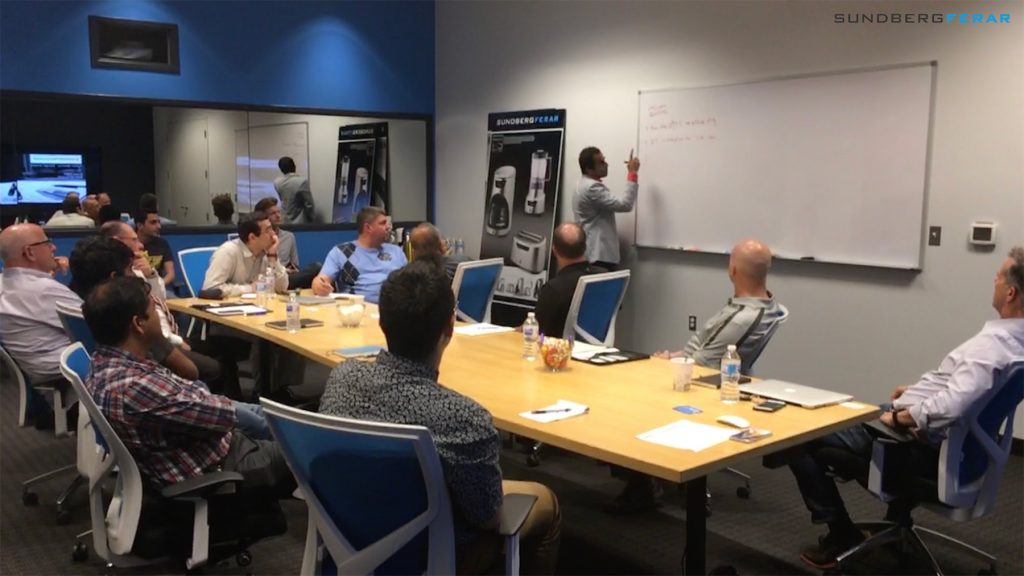 Our Innovation Round Tables are never quite the same twice in a row, but here’s a general idea of what to expect: When you arrive you will be welcomed into our big blue room, (which doubles as our design research area with one-way glass for concept testing). Brain fuel in the form of coffee and snacks will be waiting for you! After a brief introduction, time will be provided for you to get all of your questions about innovation, design or anything related on the white board. Then, our trusty VP of Strategic Growth, Jeevak, will share our work methodology here at Sundberg-Ferar. There will be an escorted tour of our studio and prototyping shop (no image-capturing devices, please), and an opportunity to take a closer look at some of the past products we’ve designed. Finally, after taking everything in, we will all join in the round table innovation discussion to engage the thoughts and questions that have been presented.